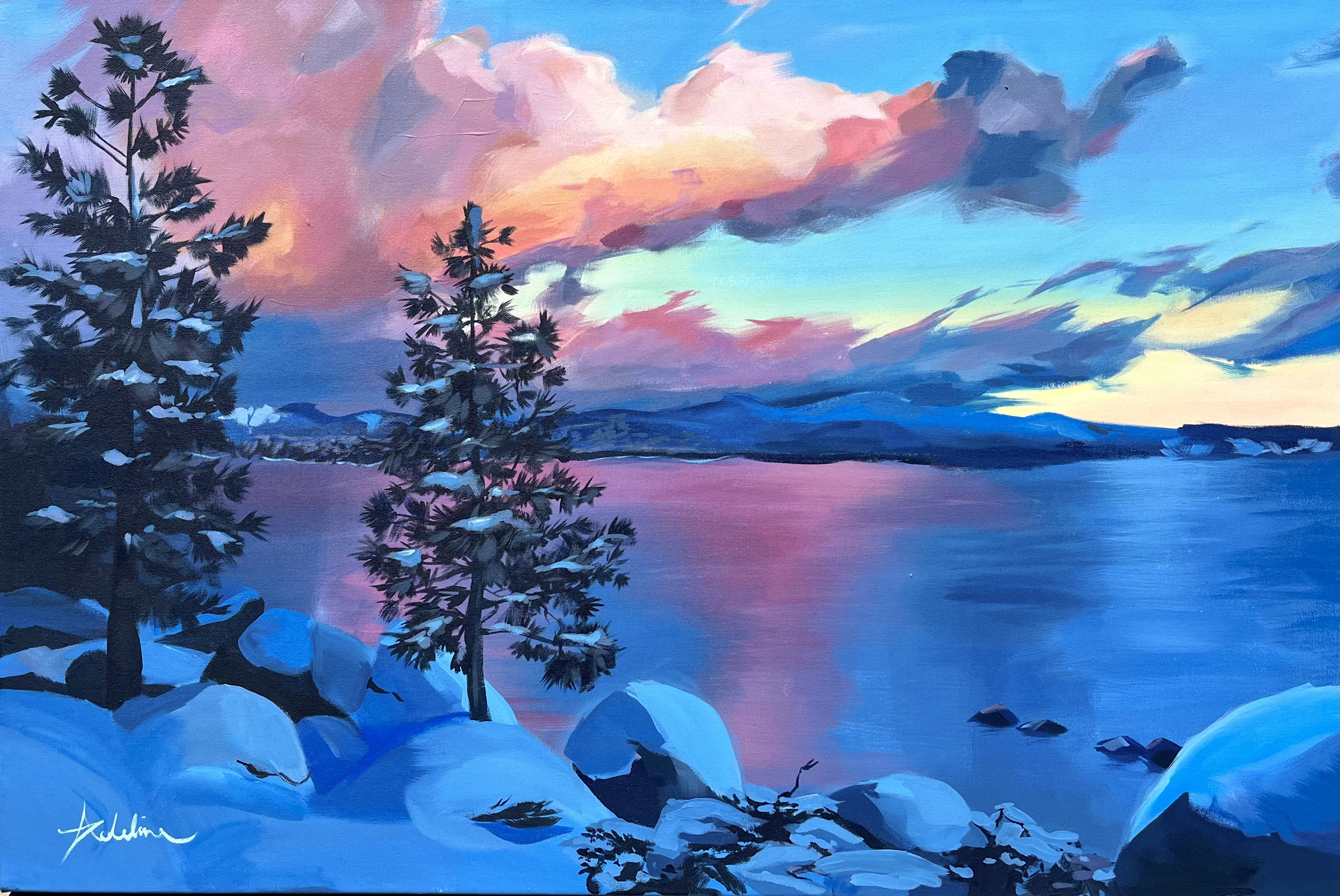 Also known as Addy, Adelina is a current college sophomore studying art at Pomona College in Claremont, California. She is currently interning for the Benton Museum of Art. Raised in Lake Tahoe, Nevada, Addy is an outdoors enthusiast whose art often reflects her home.